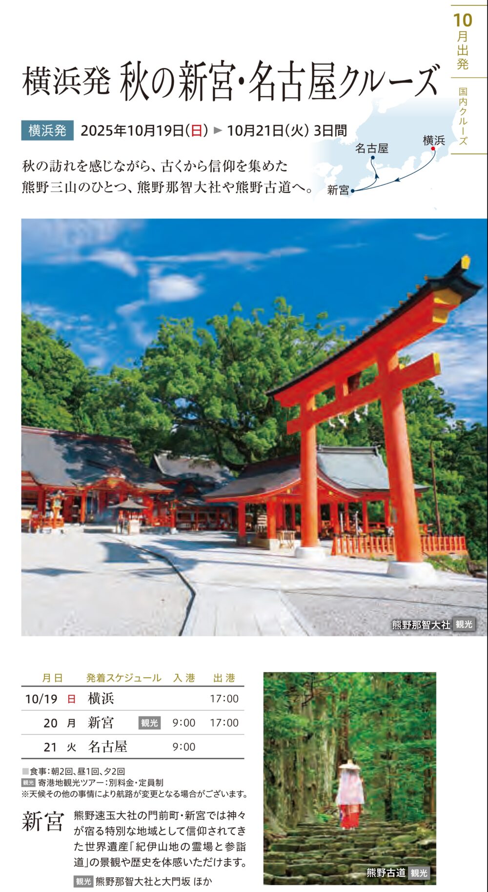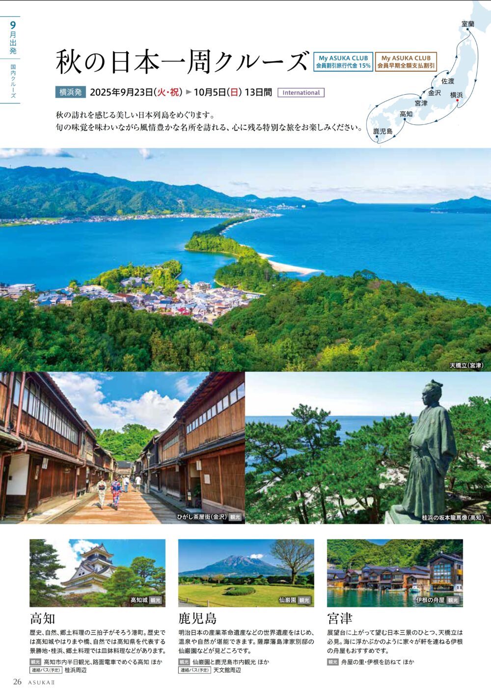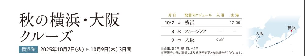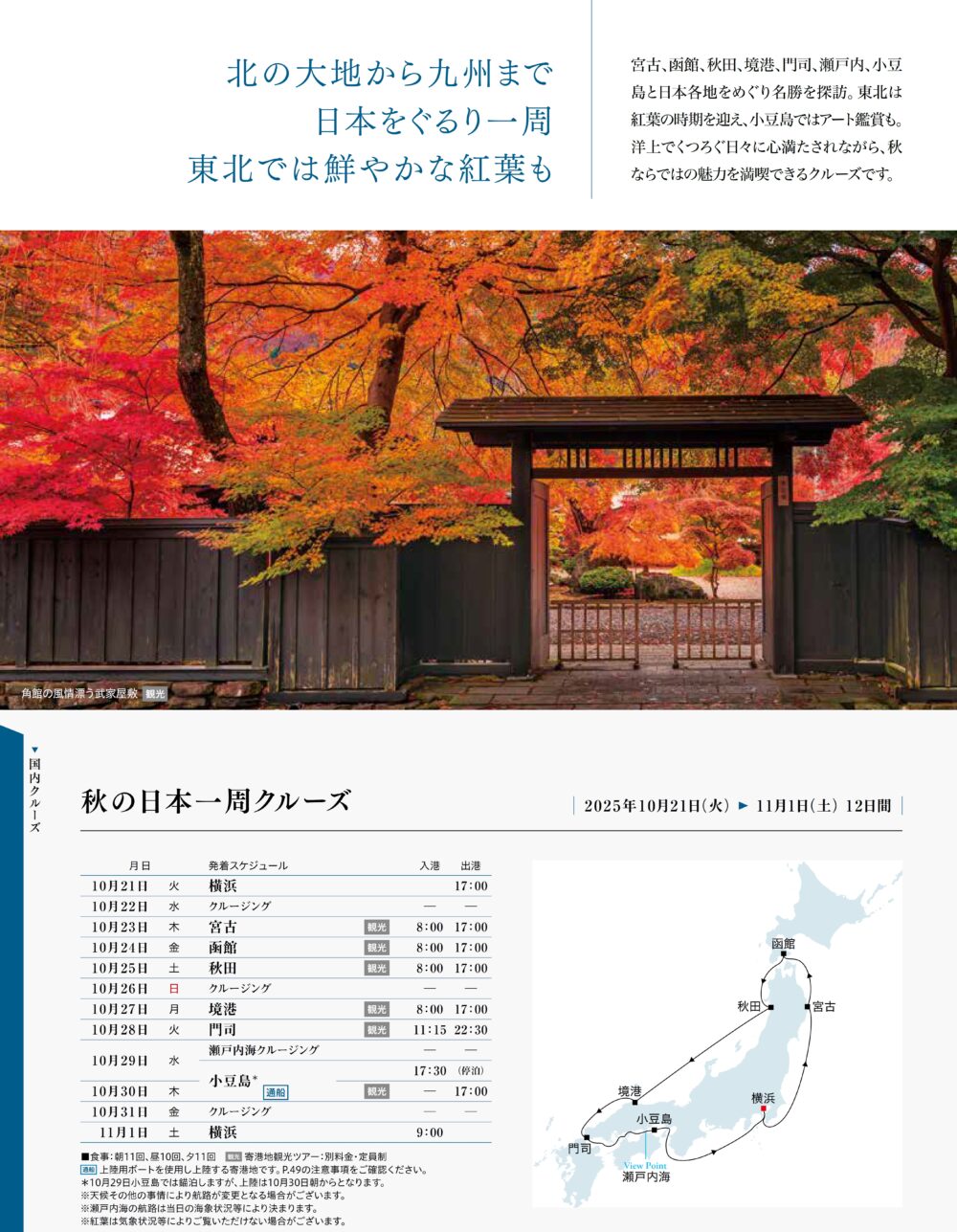 秋の日本一周クルーズ 6日間: 10/21(火)-11/1(土)