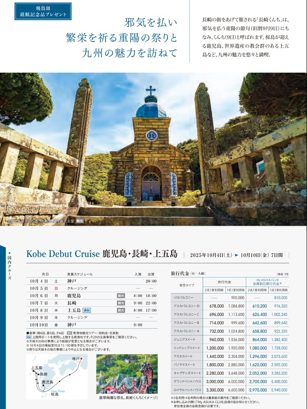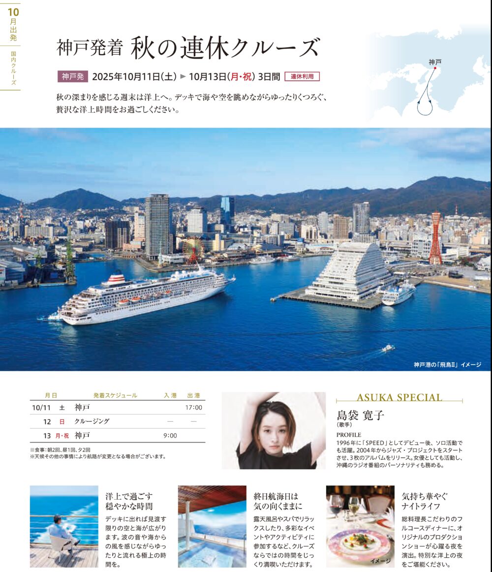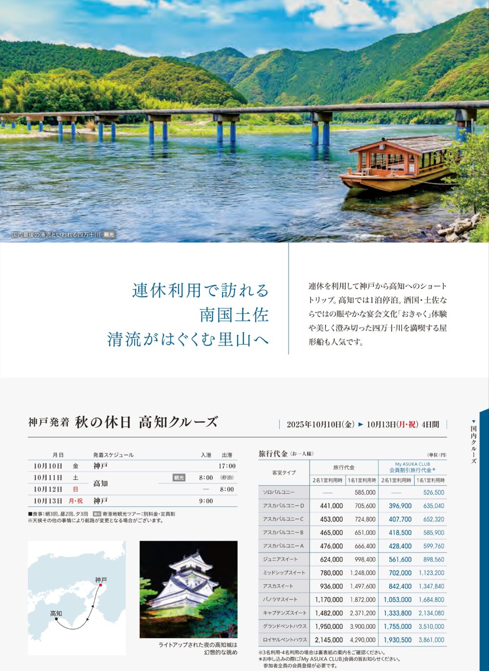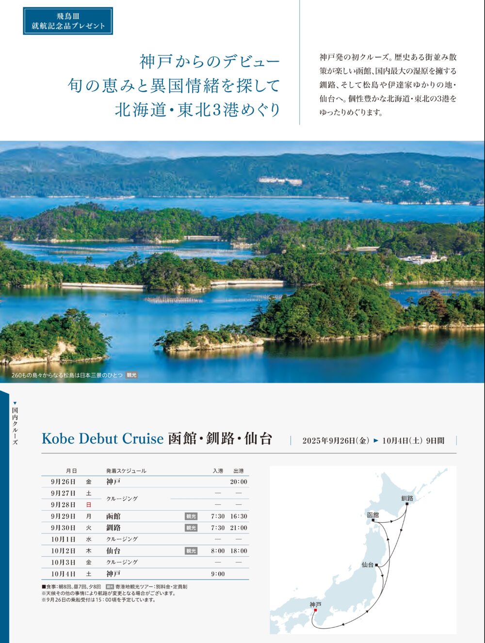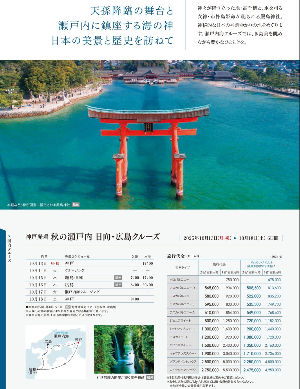 次回の飛鳥3の国内発着クルーズは下記の通りです。