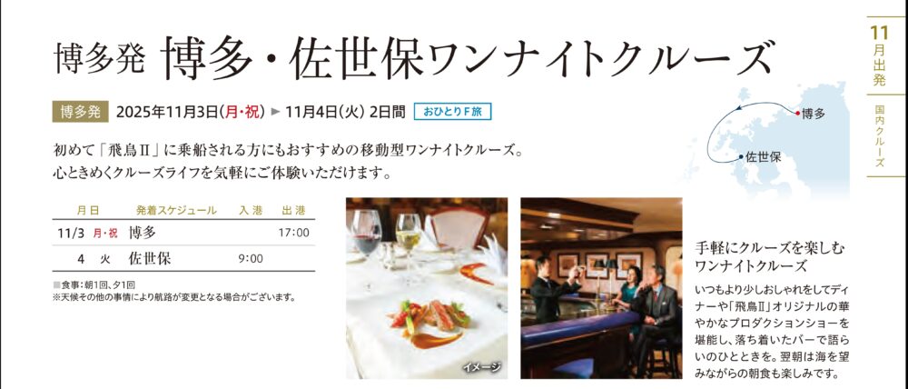 博多・佐世保ワンナイト クルーズ 2日間: 11/3(月・祝)- 11/4(火)