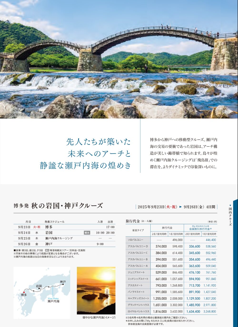 飛鳥III(あすか3)の2025クルーズプランは下記のデジタルパンフレットをご覧ください。
