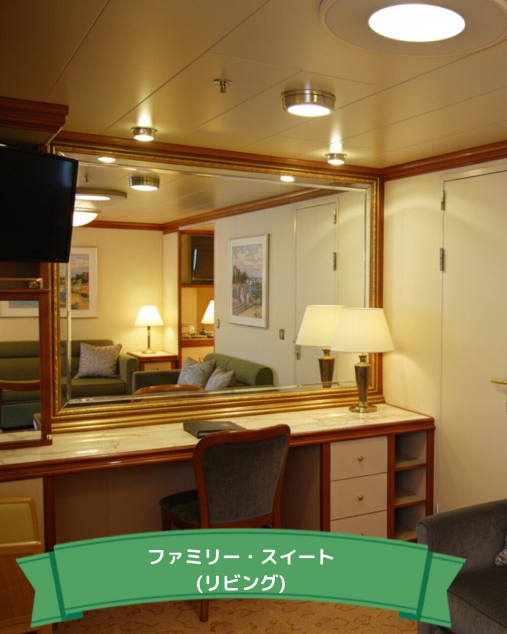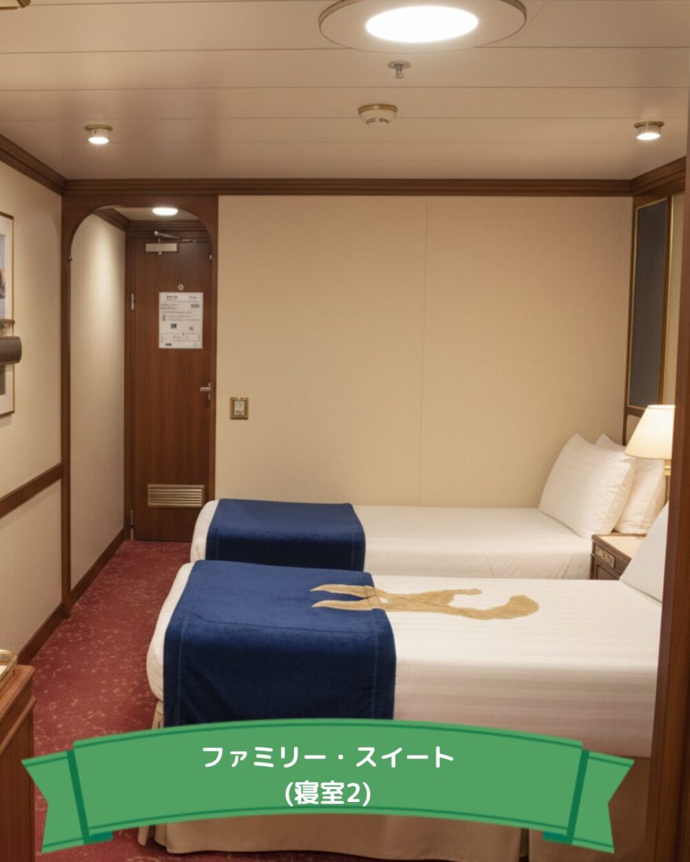 ファミリースイートは、ダイヤモンド・プリンセスの2部屋(D104,D105)しかない特別仕様のお部屋です。