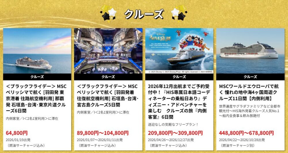 HISセールでは豪華客船の旅もセール対象になります。