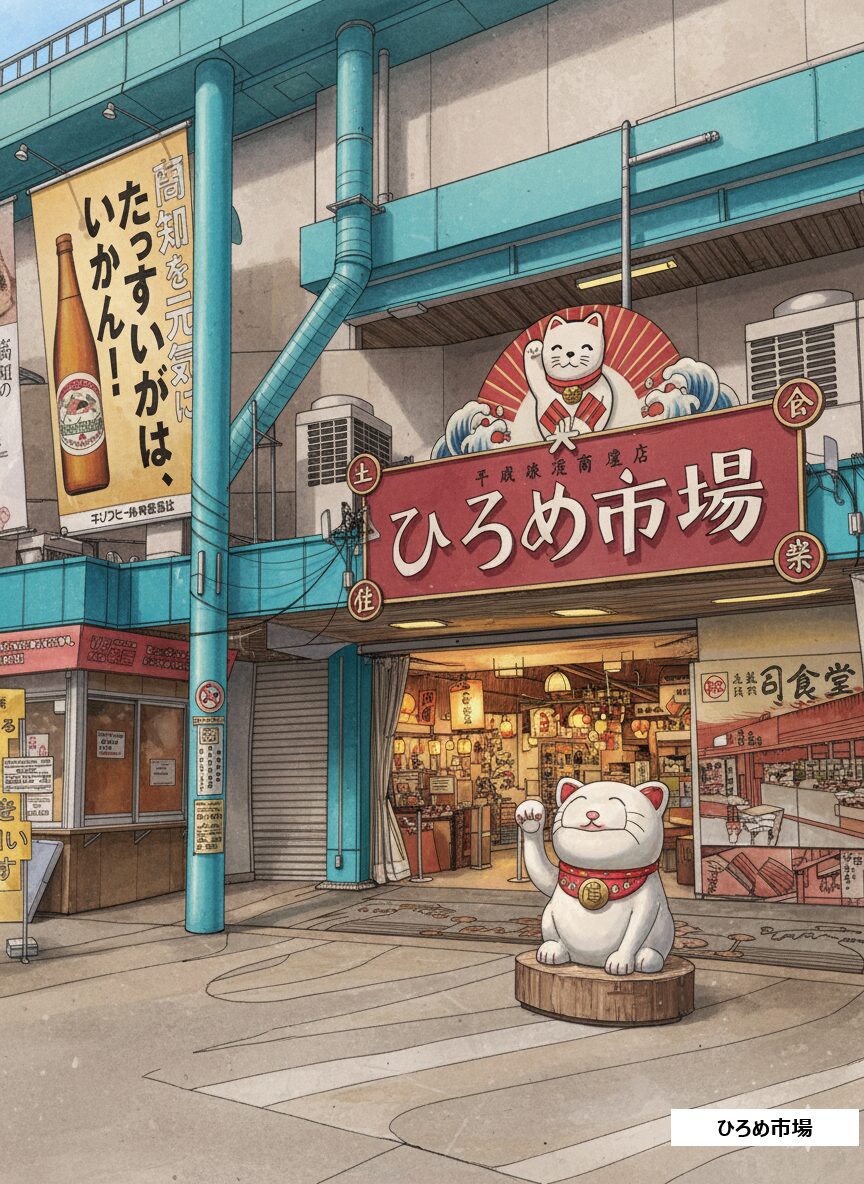「ひろめ市場」という名前は、土佐藩の家老であり、藩民から広く慕われた深尾広恵茂昭(ふかお ひろめ しげあき)に由来します。