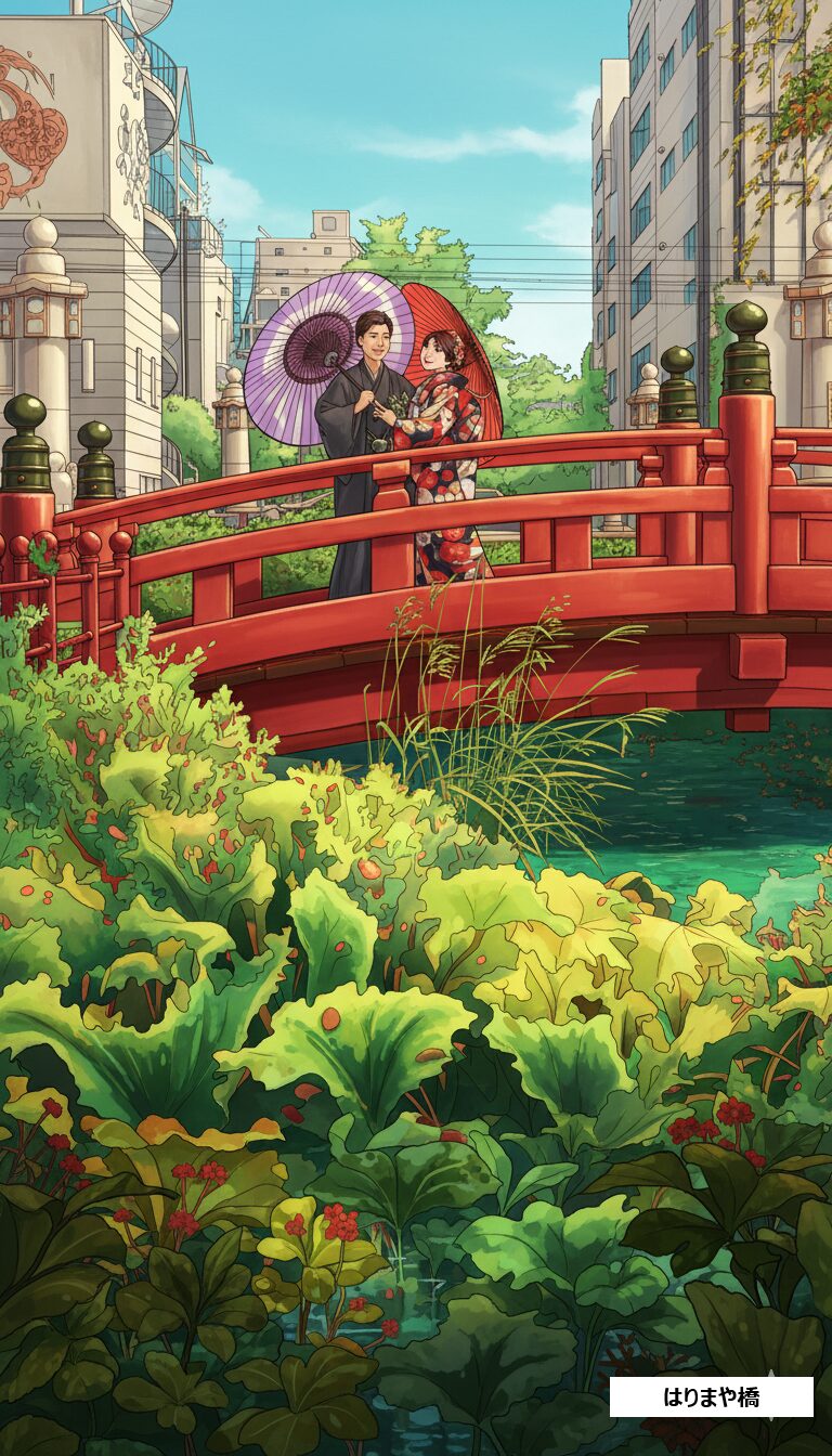 橋のたもとには、純真と大馬の物語をモチーフにしたモニュメントもあり、恋人や夫婦で訪れる人々が絶えません。