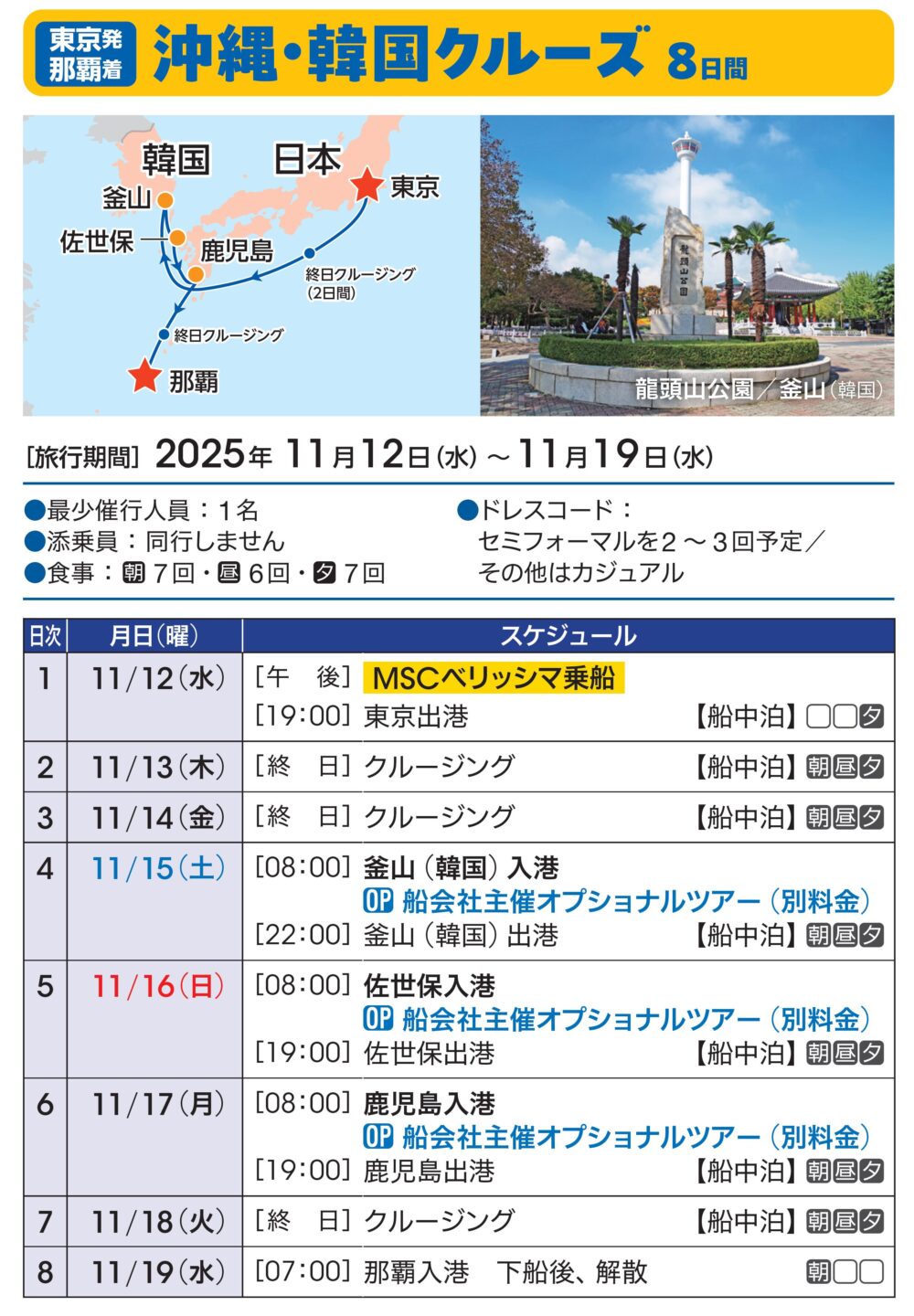 次回のMSCベリッシマのクルーズプランは下記の通りです。