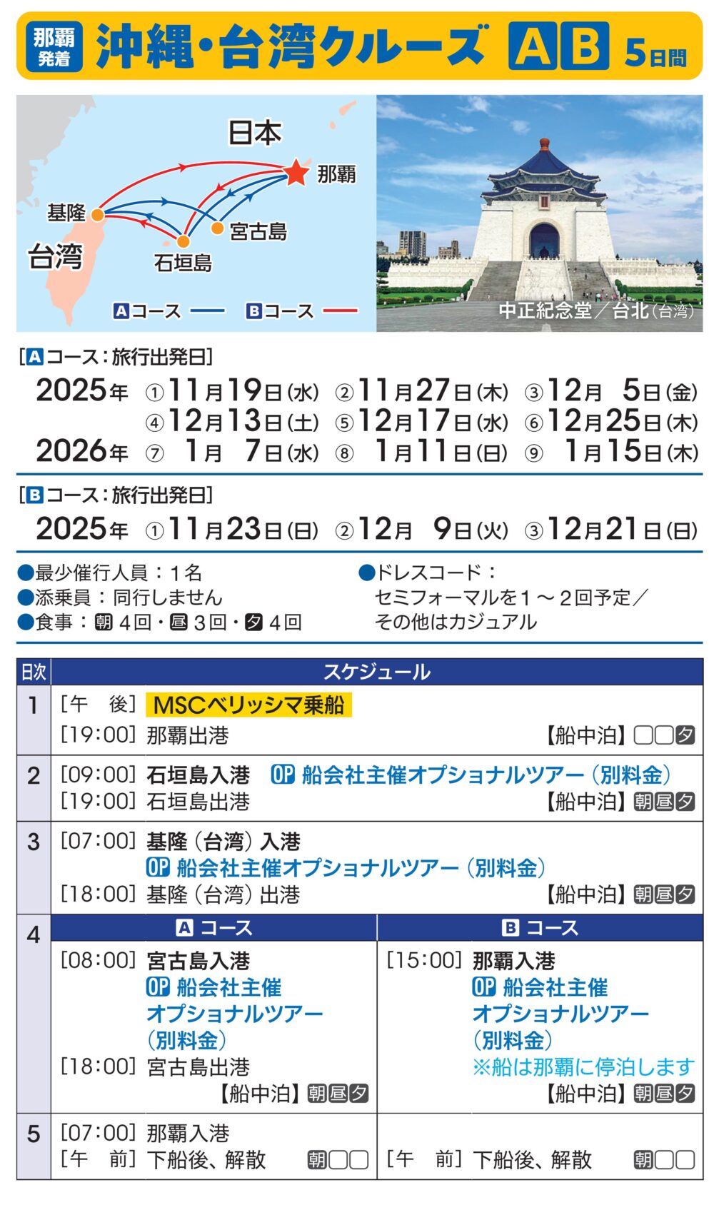 【那覇発着】沖縄・台湾クルーズ 5日間: 12/5(金)-12/9(火)