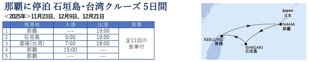 那覇に停泊 宮古島・台湾クルーズ 5日間: 12/1(月)-12/5(金)