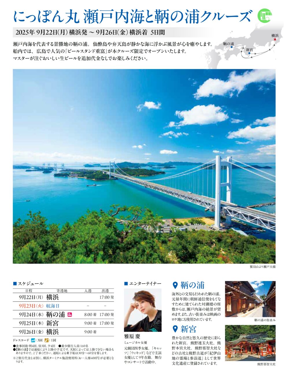 次回のにっぽん丸の国内発着クルーズは下記の通りです。