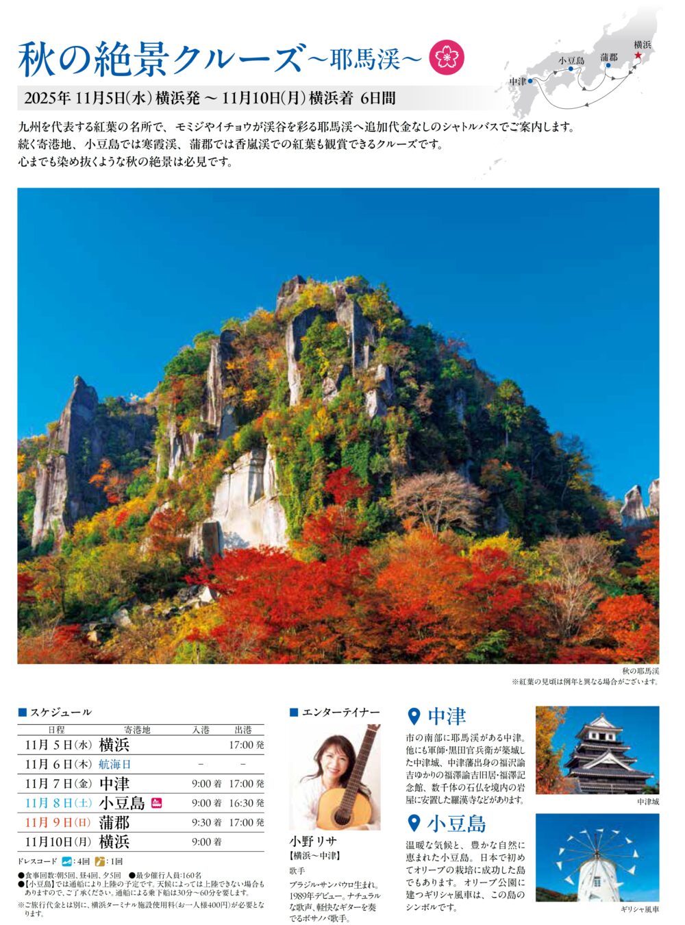 秋の絶景クルーズ ~耶馬渓~ 6日間 : 11/5(水)-11/10(水)