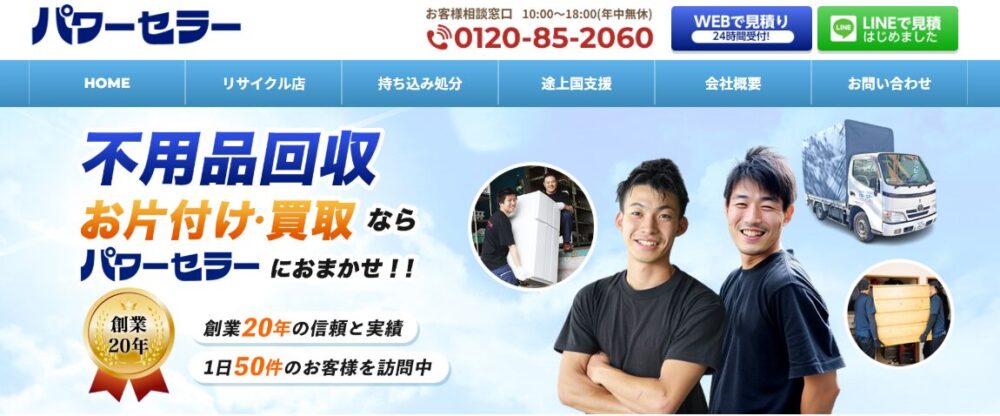 不用品回収のパワーセラーは、東京、埼玉、千葉、神奈川で格安の不用品、粗大ごみの回収を承っています。創業20年以上を超える実績があり、料金表もホームページに明示されています。お電話やラインやメールでも費用を確認できるので安心です。また、電話・メール・LINEだけでお見積り金額をお伝えします。