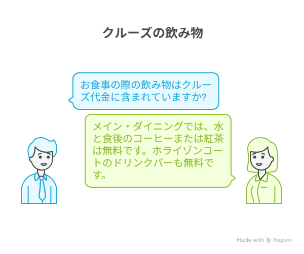 お食事の際の飲み物はクルーズ代金に含まれていますか?