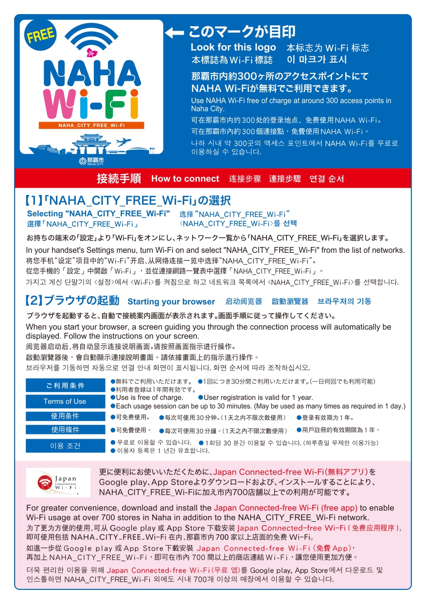 NAHA Wi-Fi at the access point in Naha which approximately 300 places is available for free.